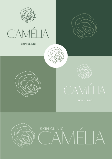 A camélia, escolhida pela cliente e desenhada à mão, representa as propriedades naturais benéficas da flor. O resultado é uma marca limpa, profissional e acolhedora.